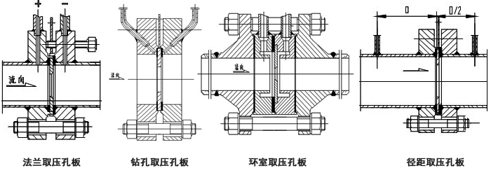 屬標(biāo)準(zhǔn)孔板。當(dāng)管徑在400毫米以上時,多采用此種形式。取壓方式為法蘭單獨鉆孔取壓、圓形均壓環(huán)取壓或方形均壓環(huán)取壓??装逍问娇蔀閹П谆蚍菢?biāo)準(zhǔn)的圓缺孔板等。