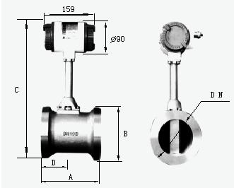 將渦街測(cè)量頭插入管道特定位置,通過(guò)測(cè)量該位置的局部流量,根據(jù)管道截面流速分布關(guān)系,計(jì)算出管道內(nèi)平均流速值。它由轉(zhuǎn)換器、插入桿組件、球閥(根據(jù)需求配 )、安裝短管(ф100)、渦街測(cè)量頭等組成。